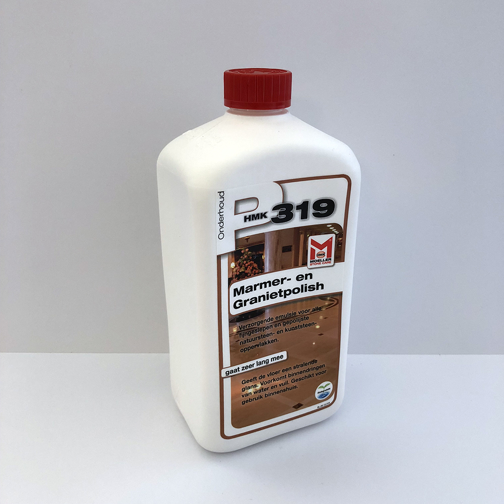 HMK P319 Marmer- en graniet polish is een beschermende en verzorgende emulsie met was voor gepolijste vloeren van natuur- en kunststenen oppervlakken. Het product geeft na oppoetsen een sterke hoge glans, vermindert het indringen van vocht, huishoudzuren en vuil. HMK P319 Marmer- en graniet polish vermindert sterk bij regelmatig gebruik het ontstaan van loopsporen in de steen.
