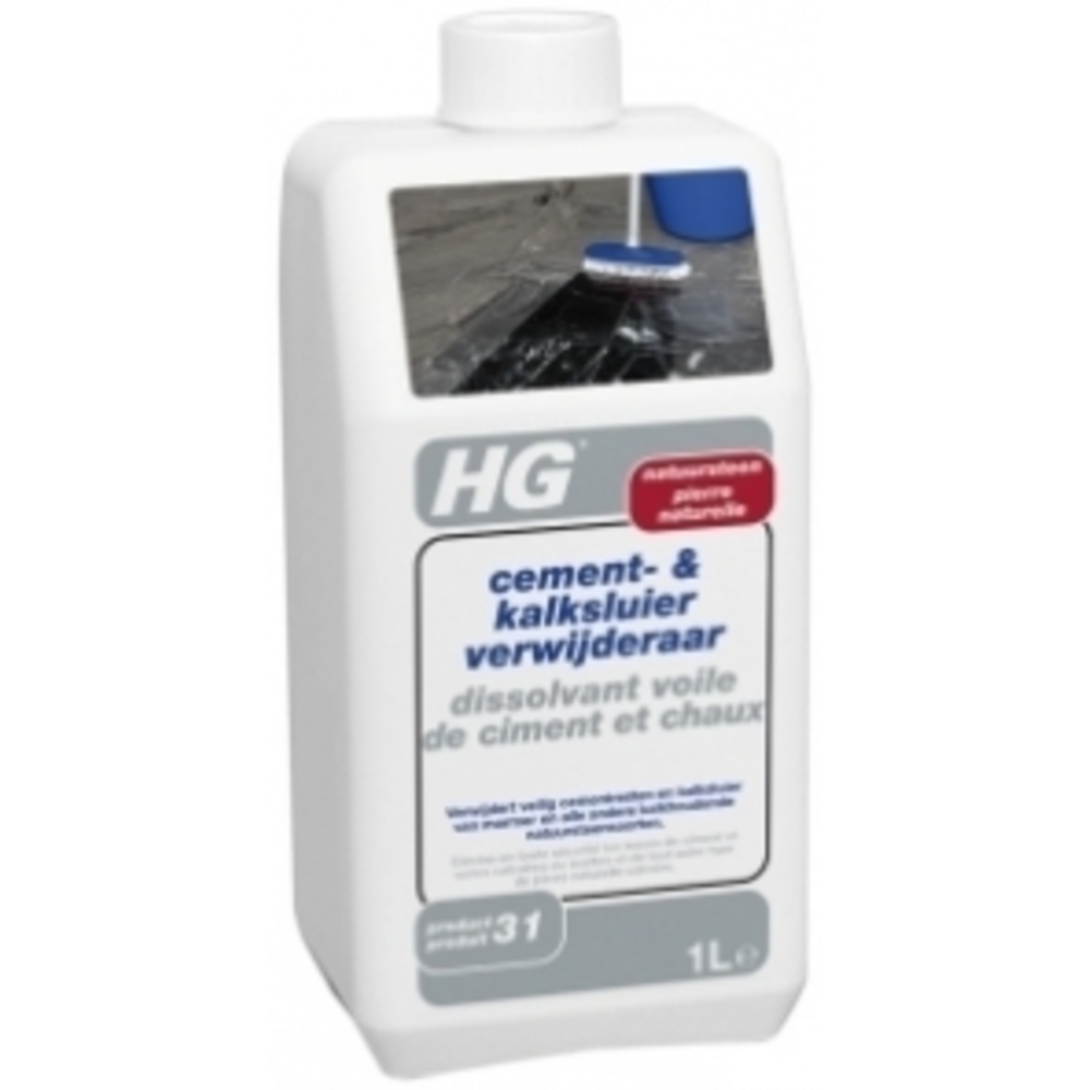 HG natuursteen cement- & kalksluier verwijderaar (HG product 31) is zuurvrij en verwijdert daarom veilig cement- en/of kalksluiers van marmer en andere kalkhoudende natuursteensoorten zoals travertin, blauwe steen, hardsteen e.d., maar is ook veilig voor beton- en kunststoftegels waarin stukjes natuursteen zijn verwerkt, zoals granito en marmer composiet.