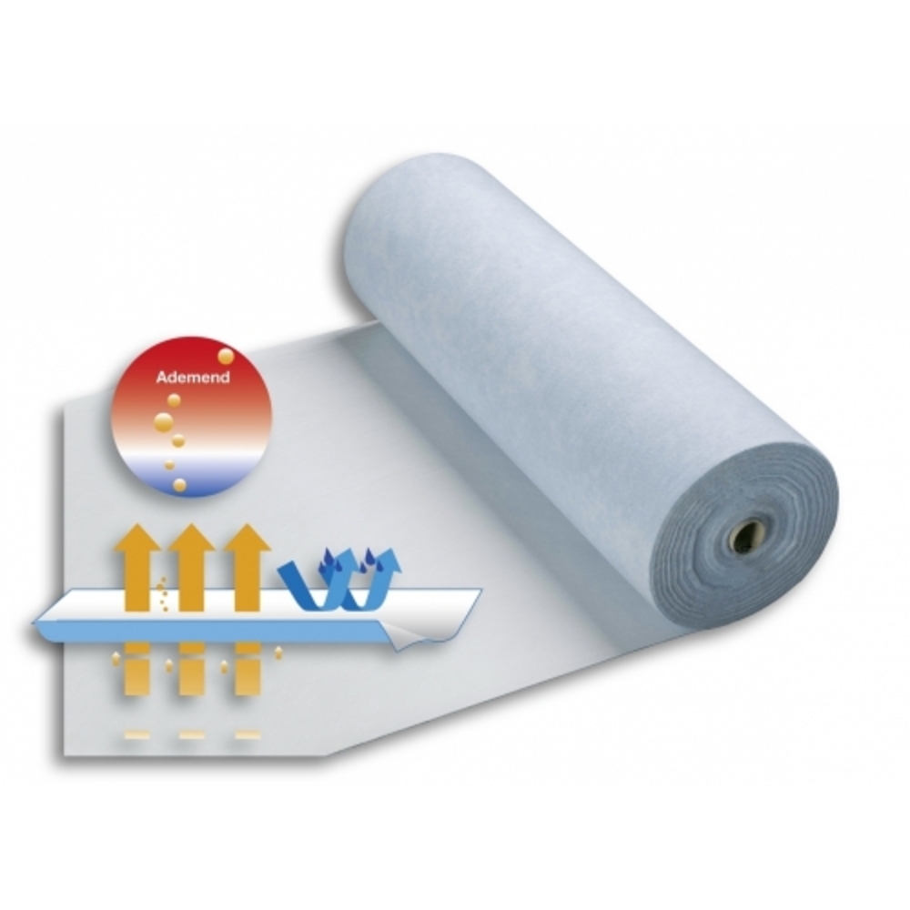 Zelfklevend en ademend afdekvlies voorzien van een vochtdoorlatend meerlagig membraan aan de bovenzijde. Laat vocht ontsnappen en verhindert het binnendringen van vloeistoffen. Speciaal voor het afdekken van pasgelegde natuursteen, afdekken van parket / houten vloer, en voor het afdekken nat gelegde vloeren.Het ENIGE ademend afdekvlies Permafix 1120 Floorguard 180 gr/m²
